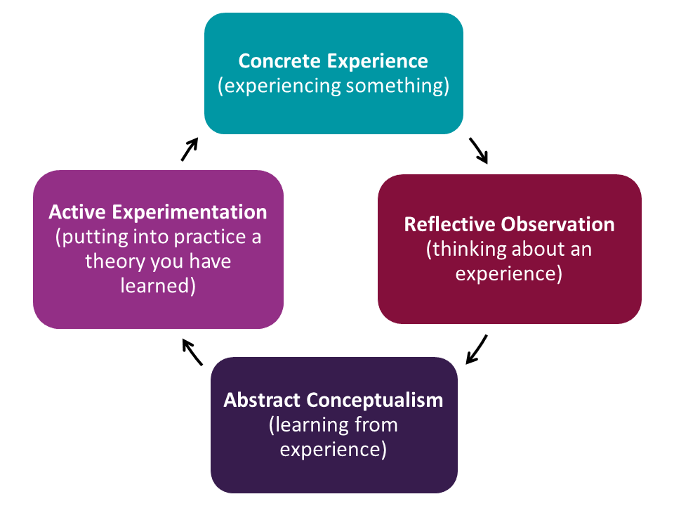 “Kolb shows how reflection on an experience leads the individual to form concepts about that experience, and to be able to generalise from one experience to another”Williams et al., Reflective Writing