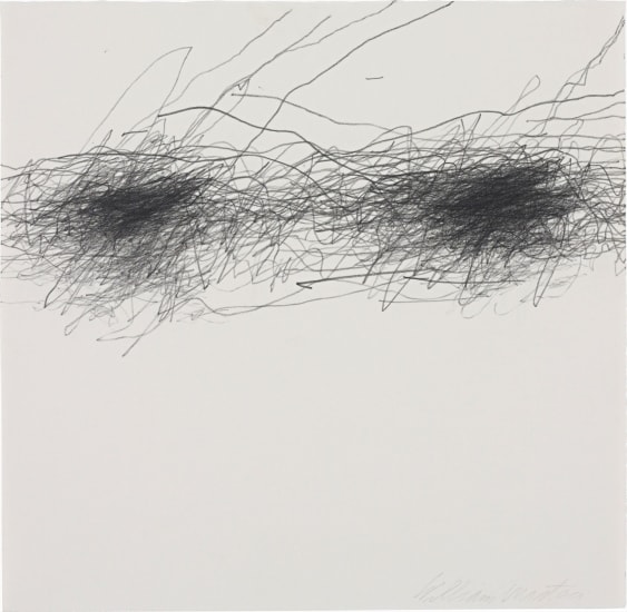 William Anastasia, artist, is also featured on the site. He creates chance with drawing experiments. “I love walking,” William Anastasi explained. “I find that walking does something to my thinking, to my mental process, that is different from sitting or lying down.” An experiment was to fold a piece of paper into sections and place in his pocket. He added a pencil which he then pressed against the paper as he walked. Again I couldn’t download from their site so googled this image of his work but without any size dimensions.